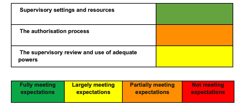 A visual summary of the PRC’s assessment of the MFSA by assessment area. Source: ESMA